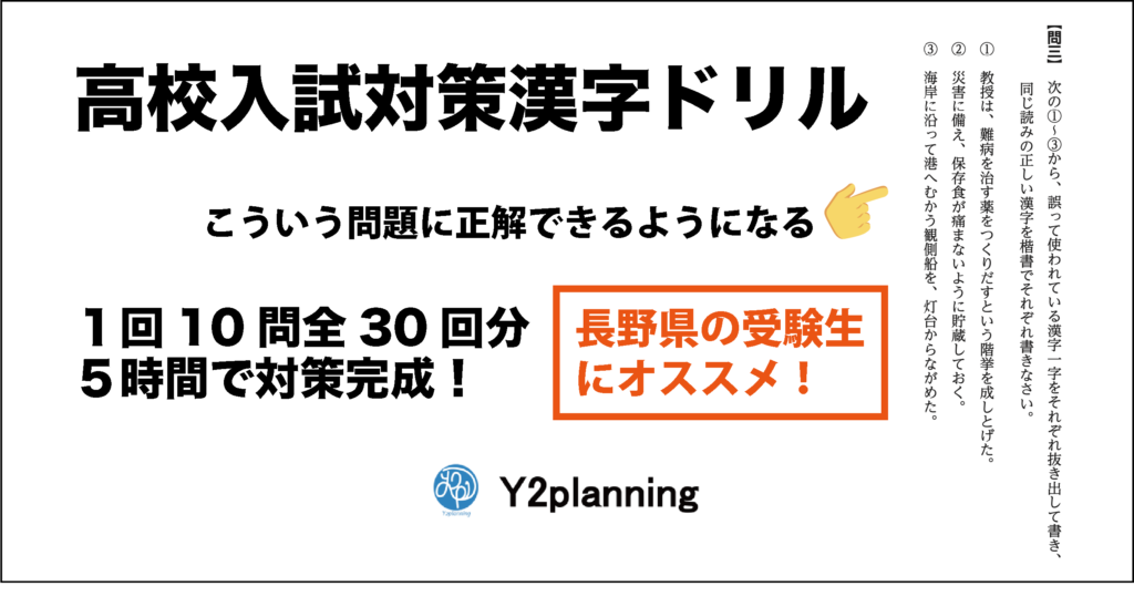 Y2planningでは、この問題に苦戦している受験生を支援するために、対策漢字ドリルを制作いたしました。